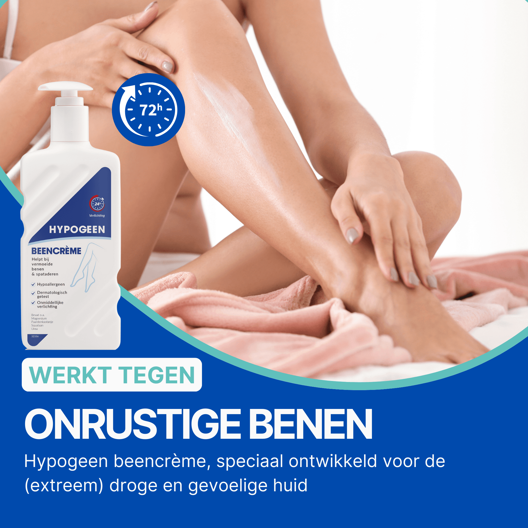 Hypogeen Beencrème is ontwikkeld voor iedereen die dagelijks wil zorgen voor droge, gevoelige of vermoeide benen. De rijke, hypoallergene formule brengt de huid direct tot rust en helpt spanning en trekkerigheid te verminderen. Dankzij de intens hydraterende textuur voelt de huid na het insmeren direct zachter, soepeler en comfortabeler aan. De crème bevat geen parfum, vaseline of paraffineolie, waardoor het een veilige keuze is voor mensen met een kwetsbare of snel reagerende huid. Dit maakt de crème ideaal voor gebruik bij huid die extra ondersteuning nodig heeft, bijvoorbeeld door leeftijd, steunkousen of een droge omgeving.
