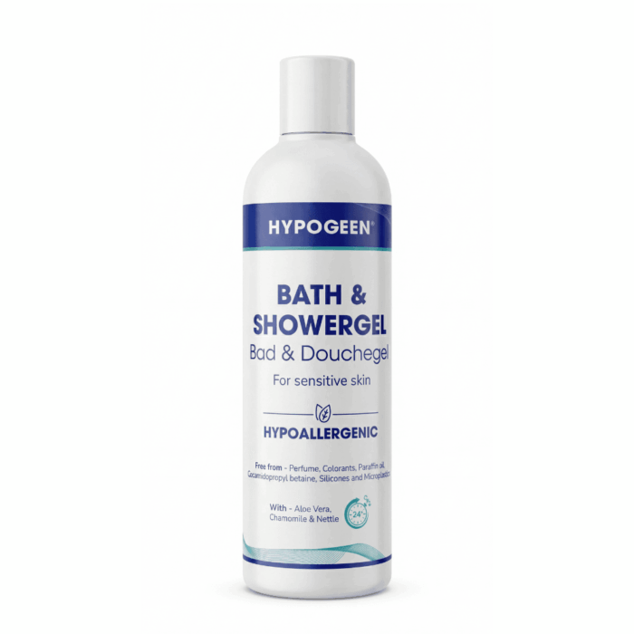 De Hypogeen Bad- & Douchegel biedt een zachte en milde reiniging, speciaal ontwikkeld voor mensen met een overgevoelige of droge huid. Deze douchegel zonder parfum en alcohol kalmeert en hydrateert dankzij de toevoeging van kamille en Aloë vera, terwijl het helpt de vochtbalans van de huid te herstellen. De formule is volledig vrij van cocamidopropyl betaïne, parfum, kleurstoffen, paraffine olie, vaseline, siliconen en microplastic, waardoor het ideaal is voor mensen die last hebben van allergieën, eczeem of psoriasis.